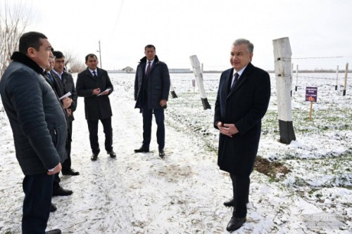 Как сообщили в пресс-службе главы государства, первым пунктом в программе поездки стало фермерское хозяйство «Пахтакор элита уругчилиги» в Пахтакорском районе. Площадь хозяйства составляет 100 гектаров, из них 80 гектаров засеяны хлопчатником и зерном, на остальной части выращиваются соя, чеснок и люцерна.